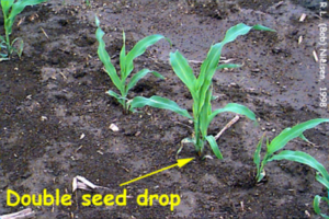 Doubles are a concern because two plants that are too close to each other are essentially fighting for the same nutrients, moisture and sunlight and often leads to both plants having a smaller-than-normal ear size.