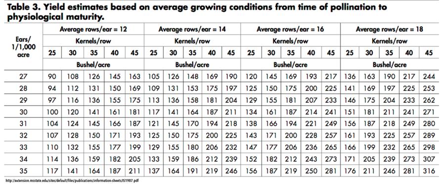 2. Count the number of kernel rows and kernels per row on every fifth ear, and determine an average for each yield component.