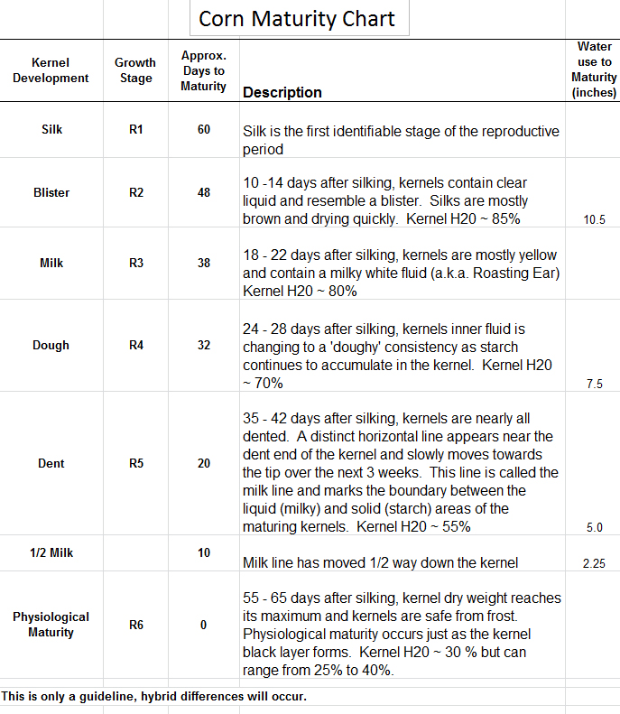 Here are more examples and pictures of the grain fill stages in corn.