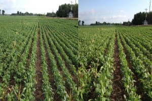 Selecting soybean varieties that have a strong resistance to cyst nematodes is a must in fields where nematodes are present. These pictures are of a pocket where nematode populations were very high. The variety on the right is susceptible to nematodes while the variety on the left has a high resistance score (8).