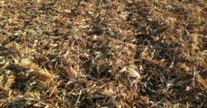 First is at harvest. It is important that the combine is adjusted to the proper settings. Also check that the chaff and stalk distribution behind the combine is spread in a uniform manner. This becomes more difficult as the size of your combine head increases. Some combine heads allow for additional options for chopping chaff and stalks, which allow for smaller pieces that ultimately break down faster. All of these recommendations can help with decomposition – plus, you have less plugging issues with seeding and tillage equipment later on.